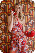 Hustle Halter and flare SET in Psychedelic Meadow Red Size Small ready to ship
